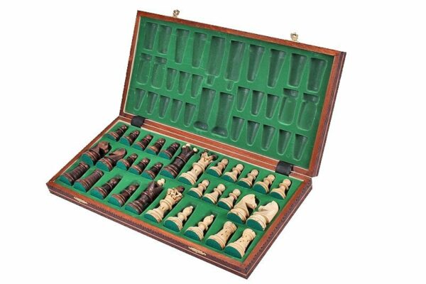 Combo Royal – Jeu d’échecs en bois de charme et sycomore erable + Echiquier pliable en bois de hêtre – Unique et Magnifique!