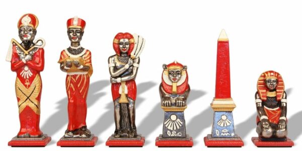 Ensemble d’Échecs en Bois d’Erable Rouge & Jeu en Métal Peint à la Main | Egypte Echiquier
