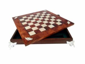 Ensemble Echiquier Bois d’Erable et Noyer et Jeu d’Echecs Bois Rose Doré et Buis – Sicilien