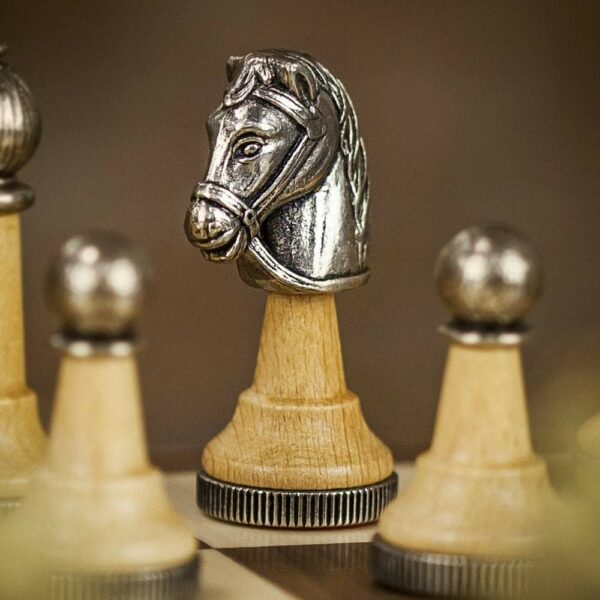 Ensemble Echiquier et Jeu d’Echecs en Bois et Métal Classic XV – Bois d’Acajou et Erable