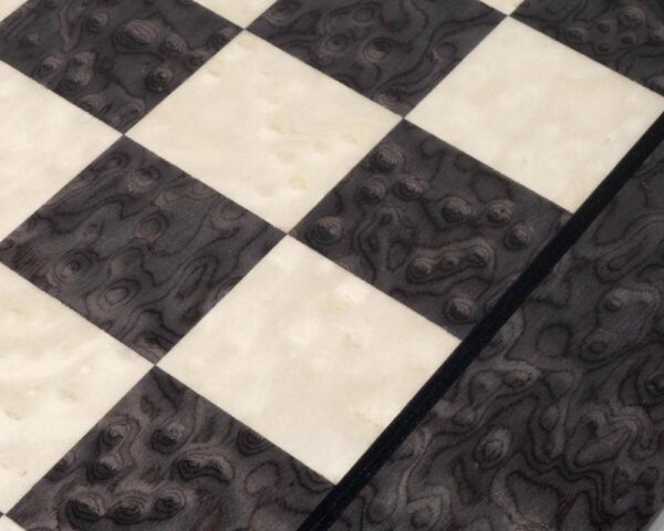 Ensemble Echiquier et Jeu d’Echec Windsor Cocoa Burl en Bois d’Ebène, d’Erable et de Buis