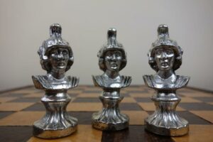 Jeu d’Echecs en Métal avec Bustes Romains – Jouez sur l’Histoire et Défiez Vos Amis!