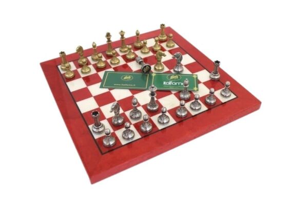Jeu d’Echecs Mignon Flower – Échiquier en Bois d’Érable Rouge et Blanc & Jeu d’échecs en Métal – Édition Limitée
