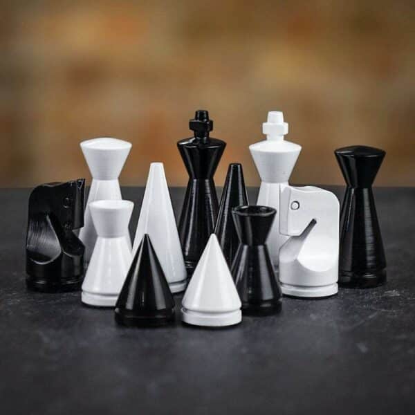 Jeu d’Echecs Pyramide Moderne en Bois Laqué Noir et Blanc – Jouez au Classique Jeu d’Echecs avec un Design Élégant et Intemporel