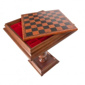 Table Lounge avec Echiquier et Compartiment de Rangement en Bois et Similicuir | Meuble Décoratif et Pratique pour les Amateurs d’Échecs